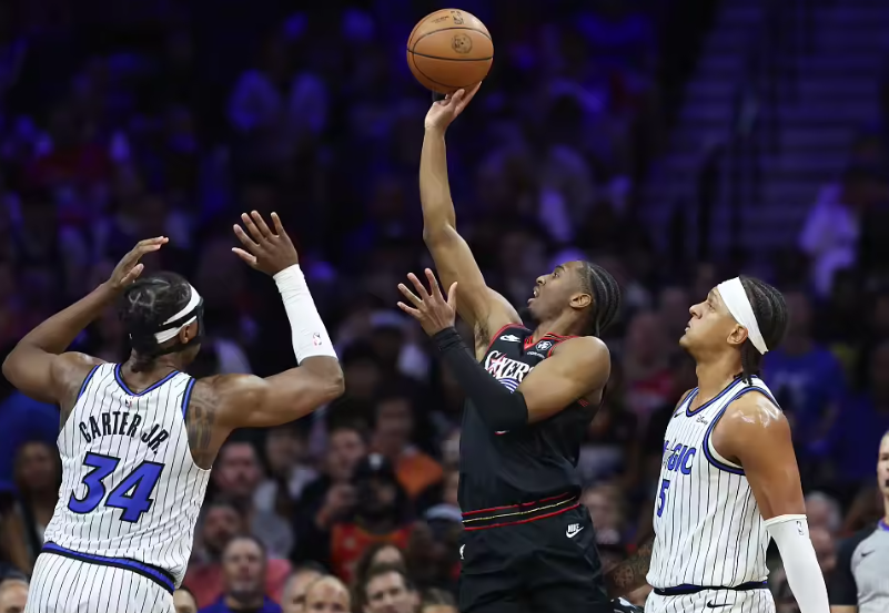 當喬爾·恩比德因闌尾炎手術高掛免戰牌,費城76人的季后賽命運便壓在了泰瑞斯·馬克西的肩上。這位全明星后衛沒有讓人失望,在附加賽生死戰中鏖戰42分鐘,25投11中轟下全隊最高的31分并送出6次助攻,帶領球隊以109-97擊退奧蘭多魔術,鎖定東部第七,昂首挺進季后賽。在恩比德缺席的夜晚,馬克西用速度與果決證明,費城不僅有“過程”,更有能獨當一面的“新答案”。
